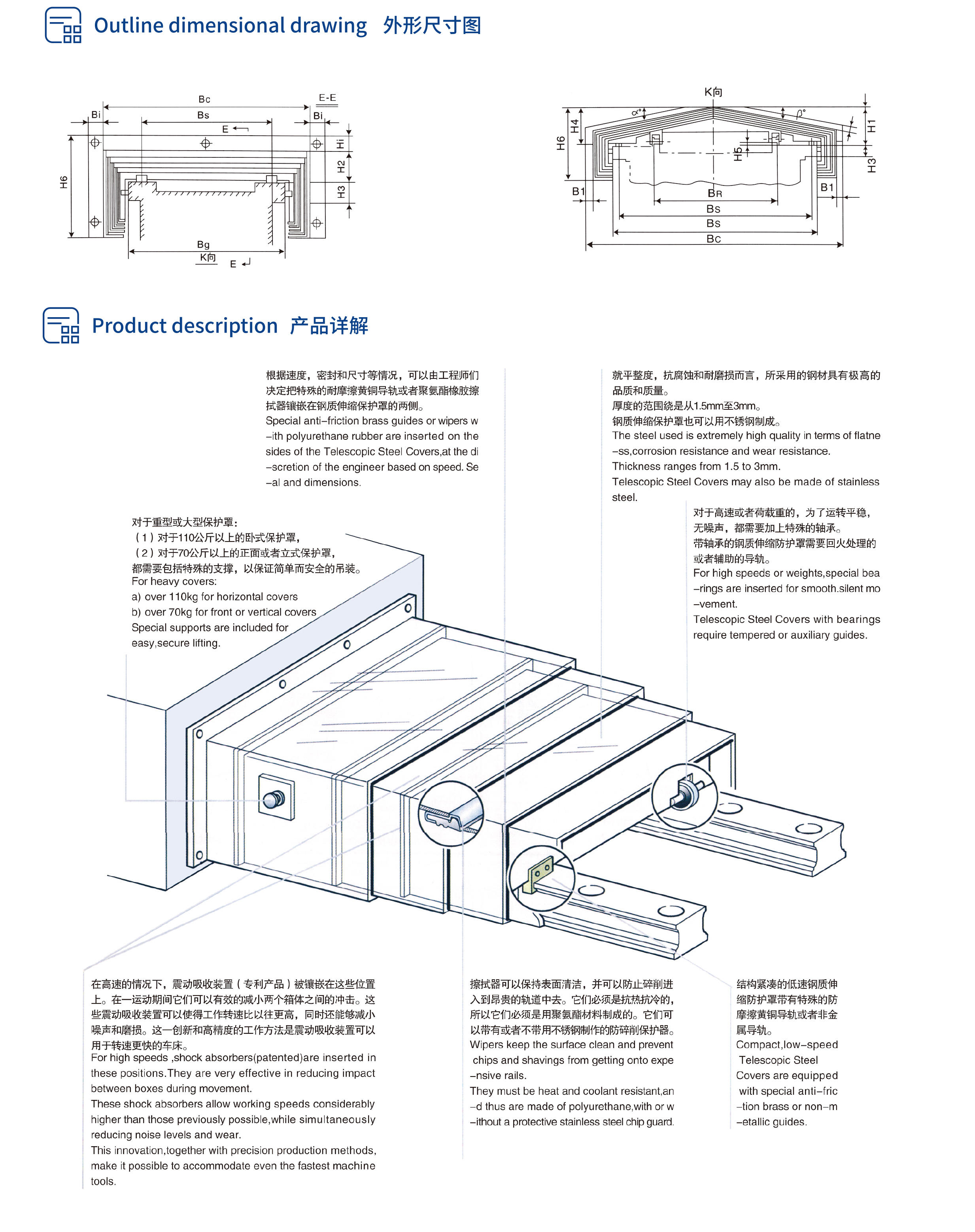 鈑金護(hù)罩是用不銹鋼板或冷板制成,能有有效的防止鐵屑和人為突發(fā)事故對(duì)機(jī)械導(dǎo)軌和絲橫桿的保護(hù),本產(chǎn)品是由多片鈑金組合而成。
